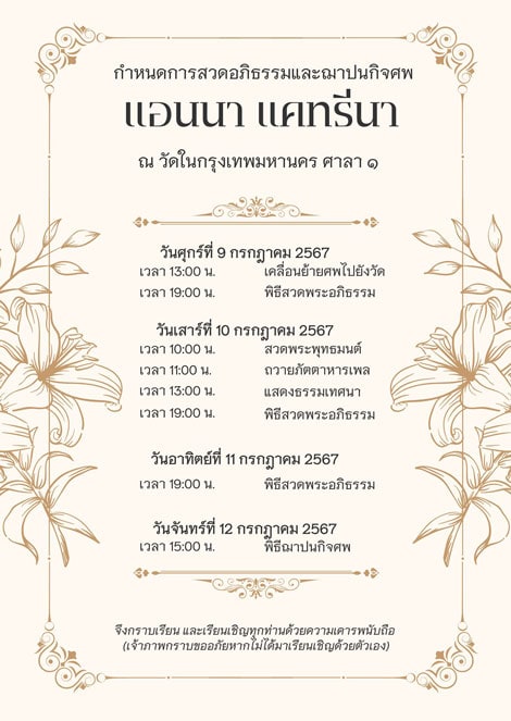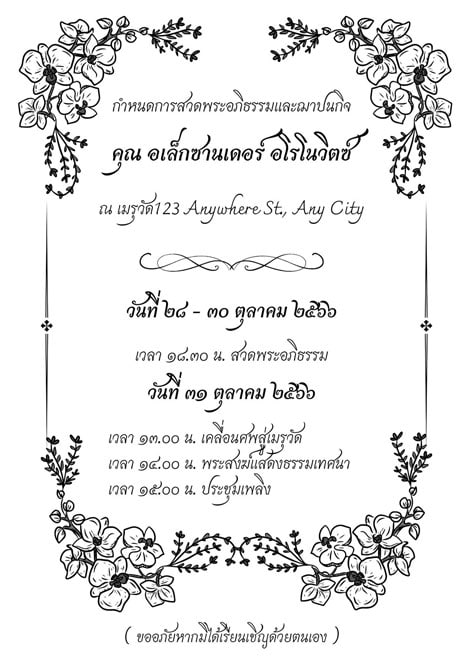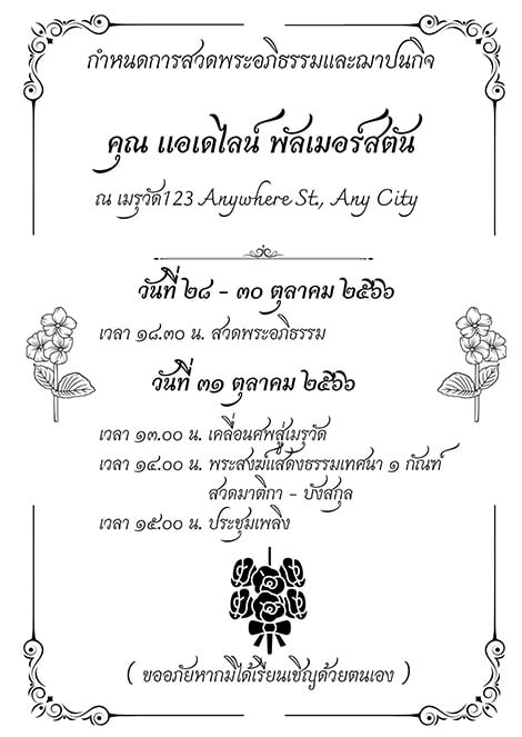การ์ดเชิญงานศพ งานฌาปนกิจ